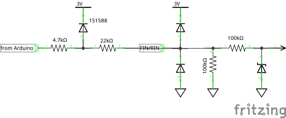 そこで、Arduino との間にレベル変換のための回路を追加します。